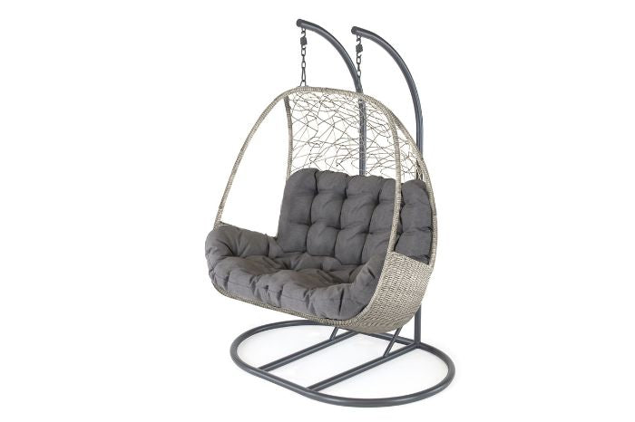 Our Kettler Palma Cocoon Double Swing Chair in whitewash stylishly creates the perfect place to relax with a loved one and a cuppa or just to lounge in the sunshine. The hanging egg chair is made with half-round wicker with full-round open woven detail. Made of a durable and rustproof steel frame with wicker detailing that is UV and water-resistant it looks great in any outdoor space.